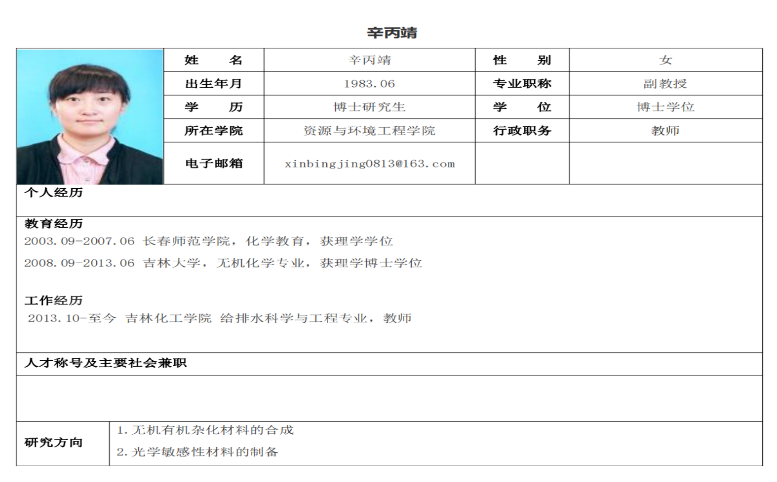 吉林化工学院硕士生导师个人情况简介-辛丙靖