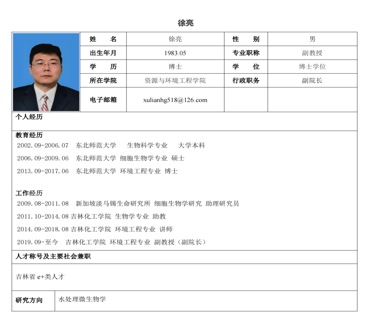 吉林化工学院硕士生导师个人情况简介-徐亮