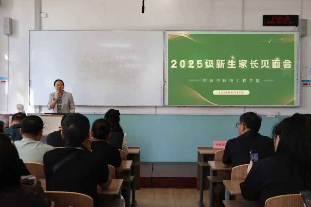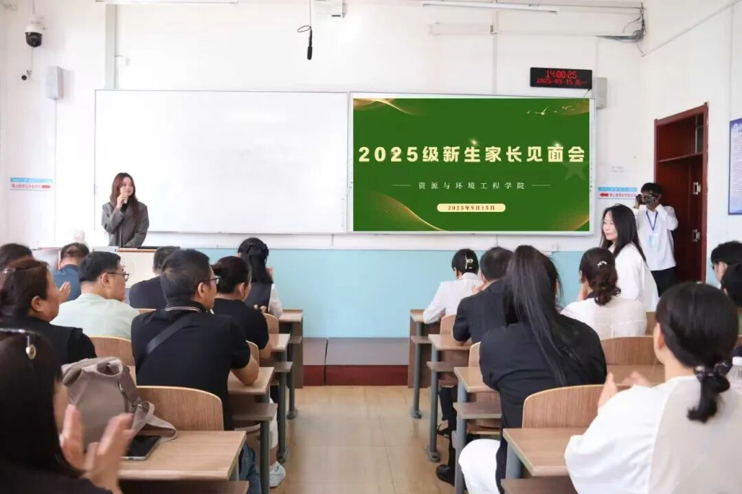 本次会议由资源与环境工程学院院长于凤丽、党委副书记高寒、副院长邹继颖、给排水科学与工程系主任惠远峰、环境工程系主任邵泽强、安全工程系主任付净、环境科学系主任魏思扬出席,2025级新生家长代表参加,会议由2025级本科生、研究生辅导员高敏钧主持。