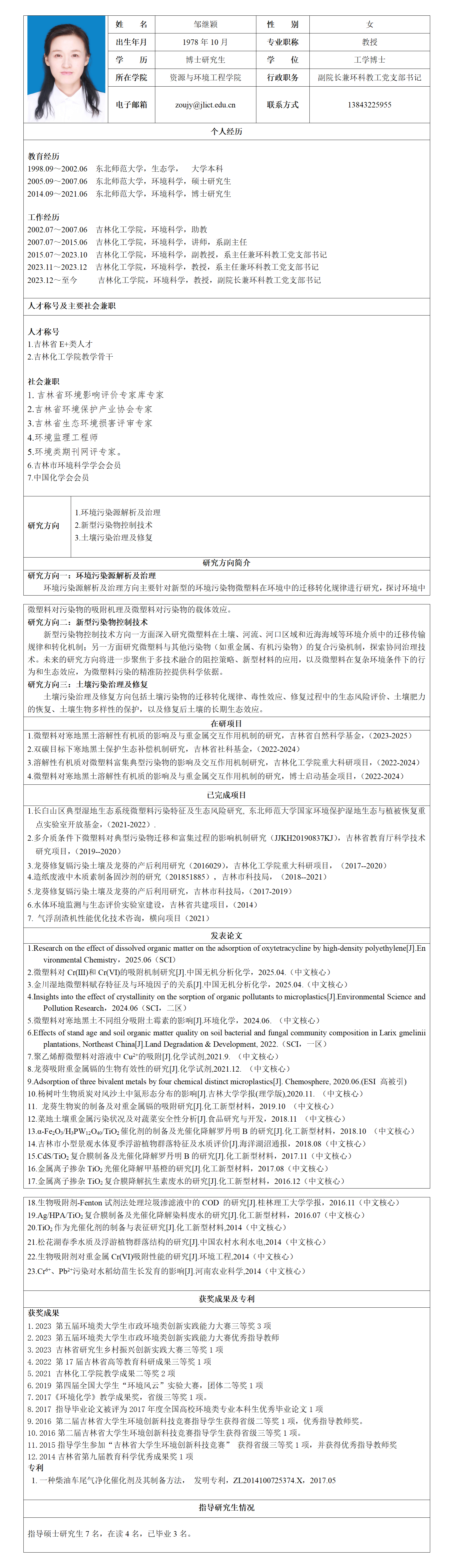 吉林化工学院硕士生导师个人情况简介-邹继颖