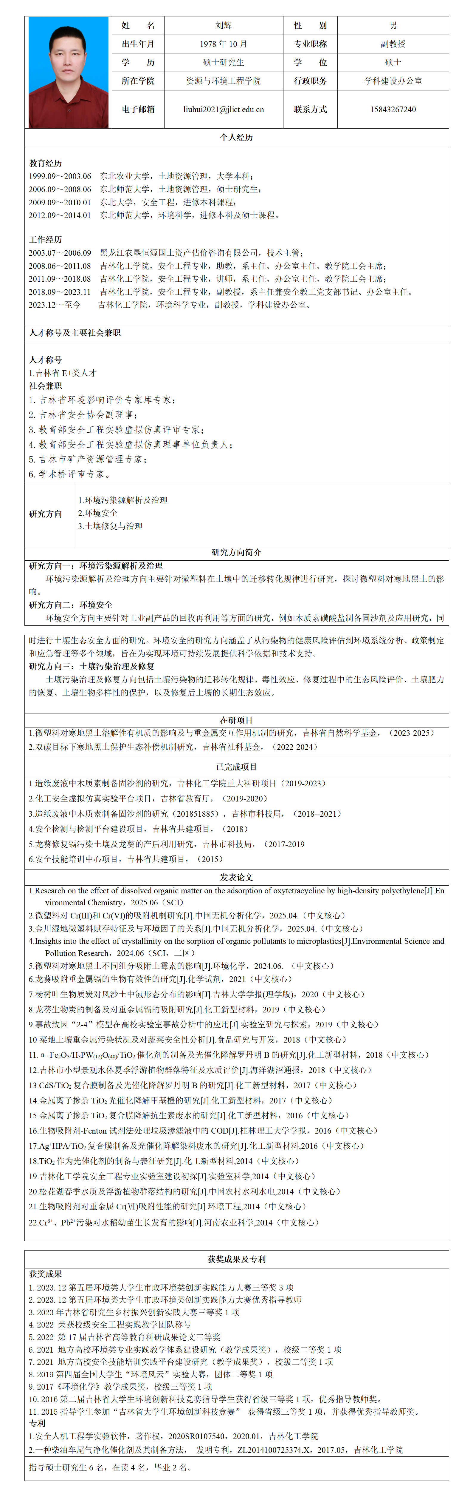 吉林化工学院硕士生导师个人情况简介-刘辉