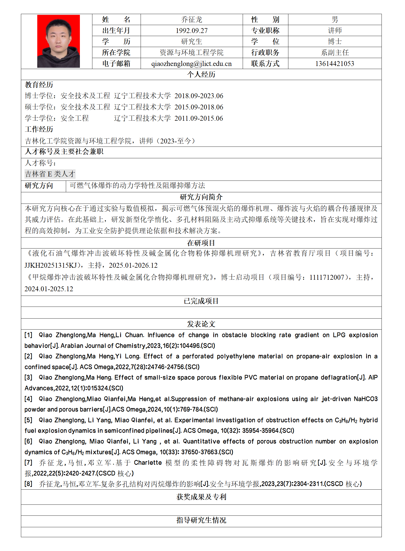 吉林化工学院硕士生导师个人情况简介-乔征龙